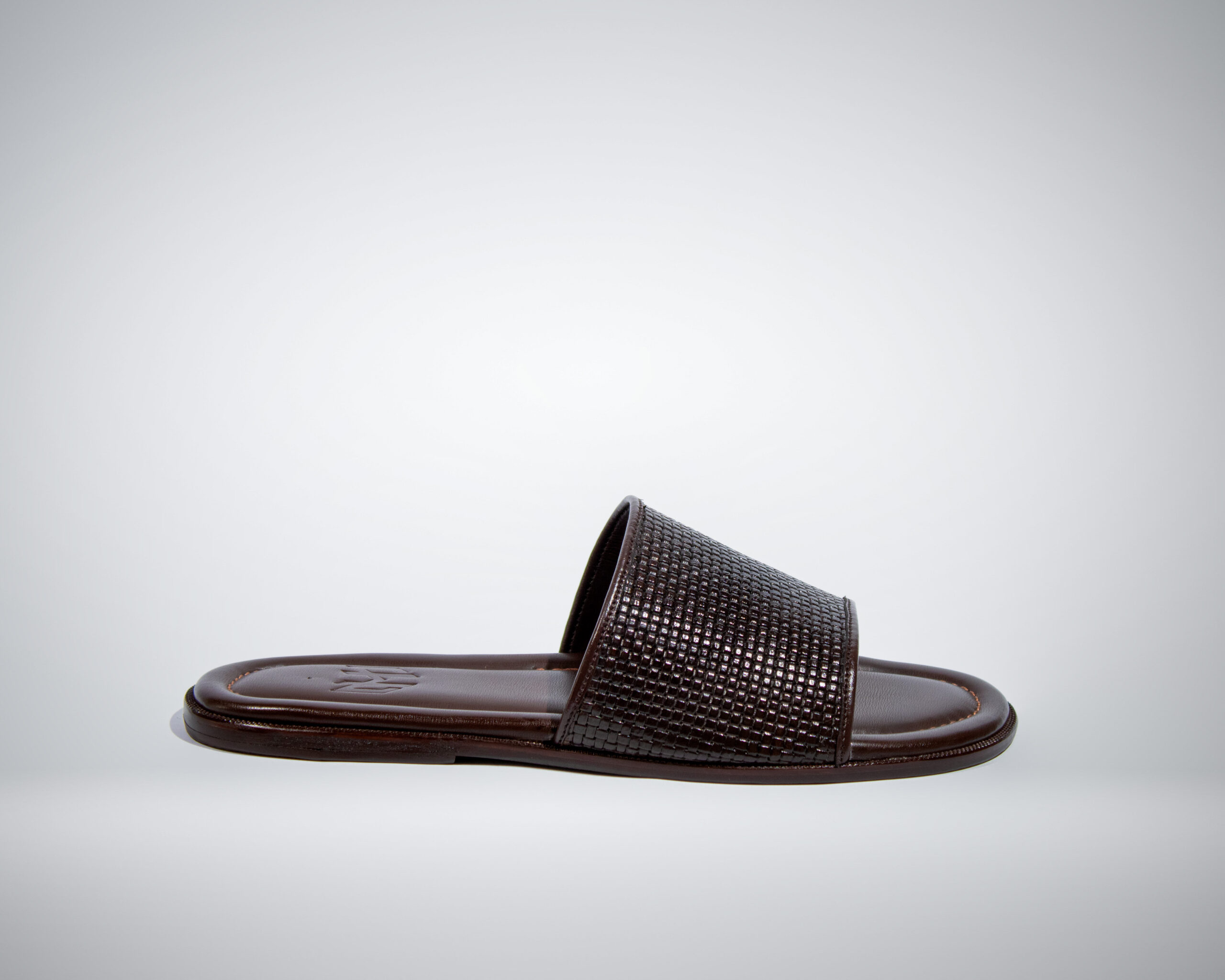 Handmade basket leather slides with memory foam padded insole. Made with calfskin topgrain leather.