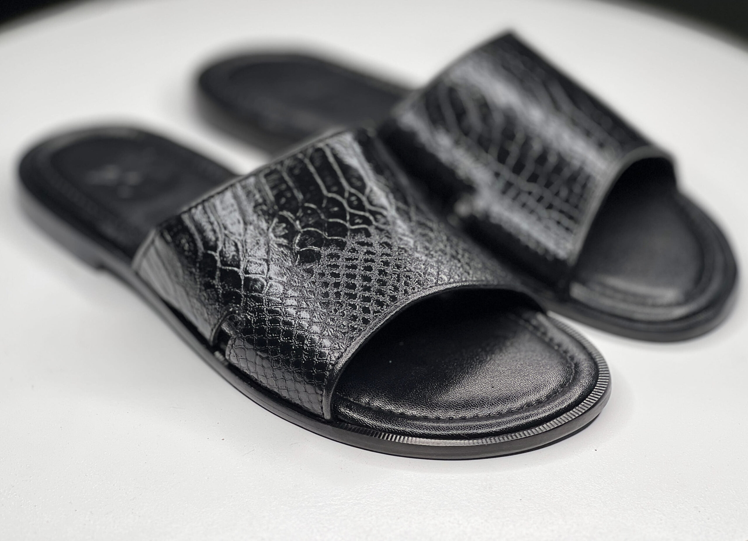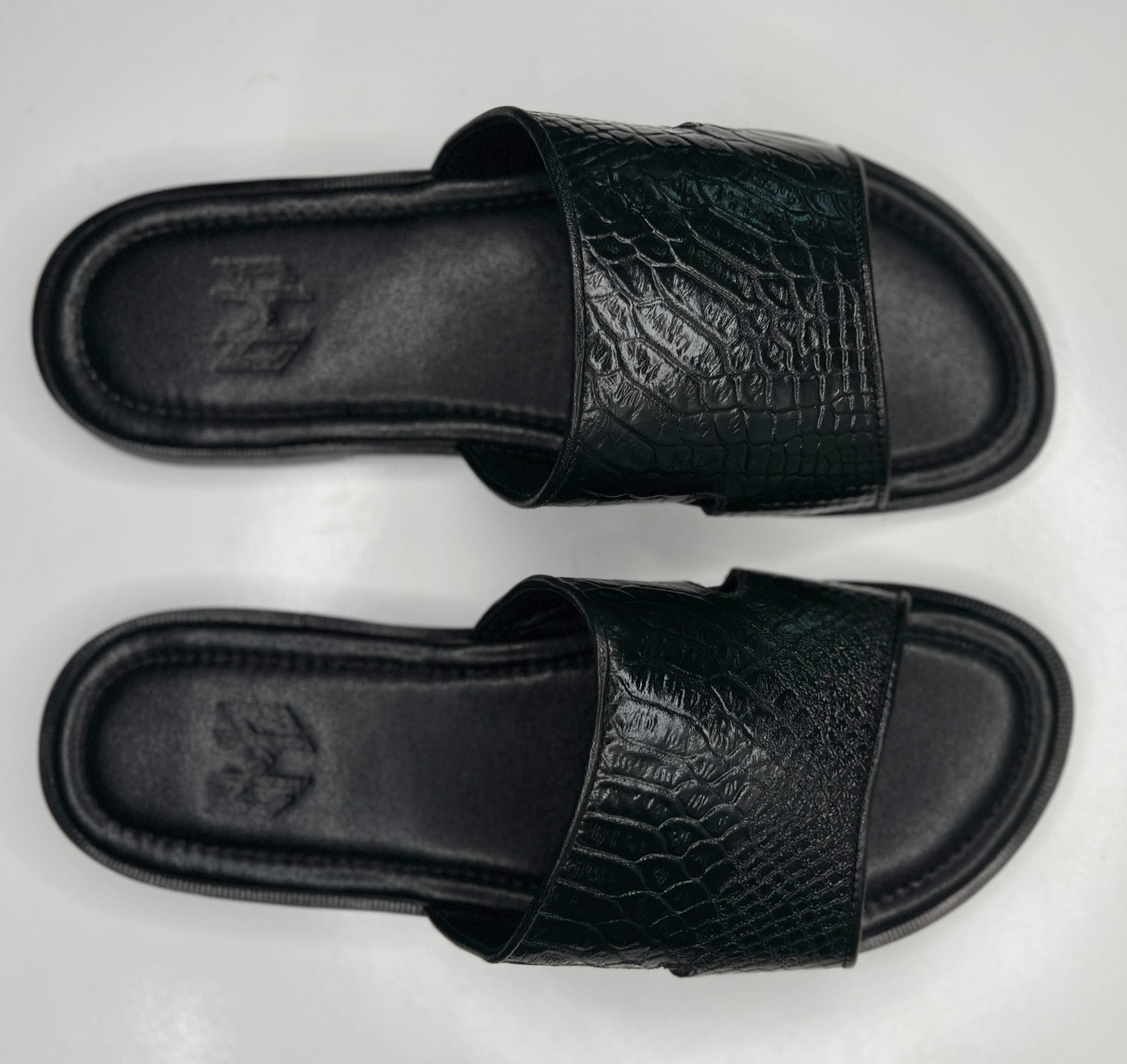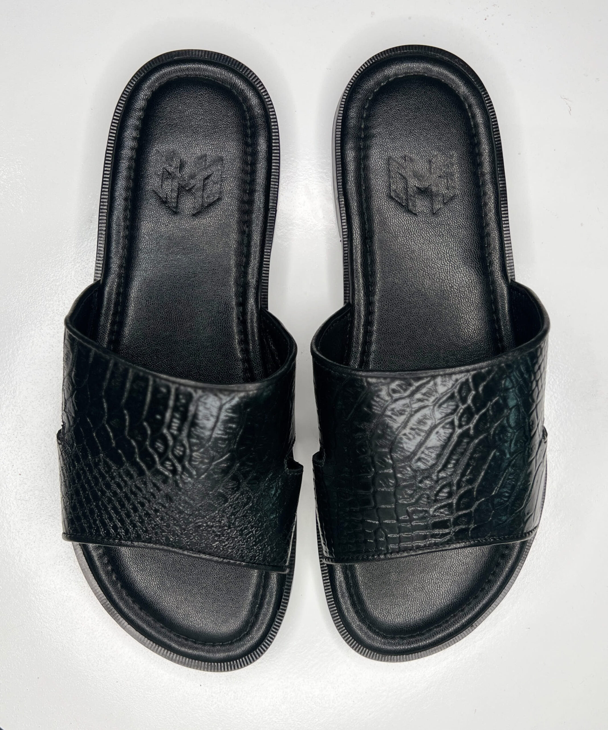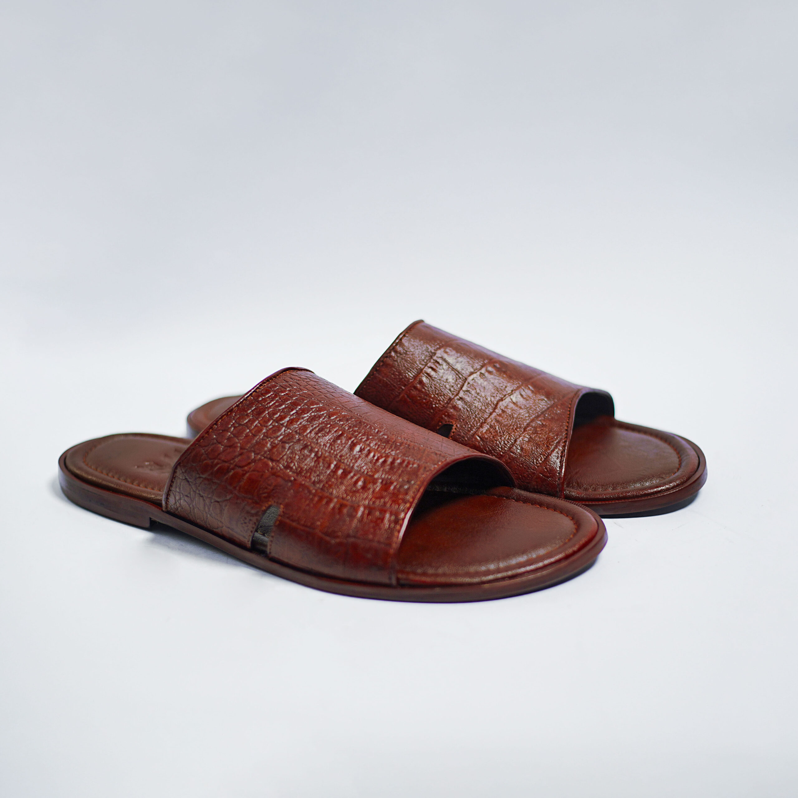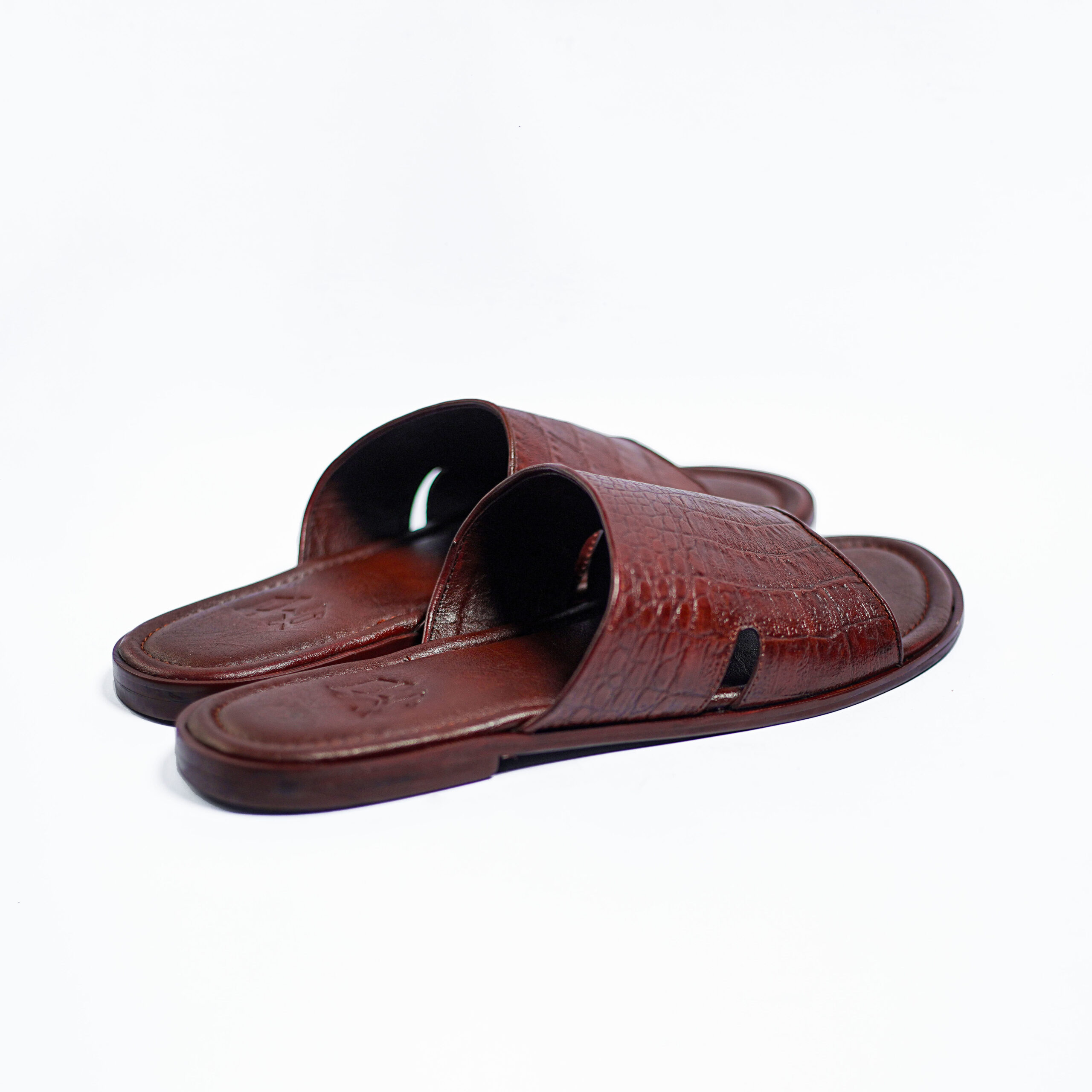 Handmade leather slides with memory foam padded insole. Made with calfskin topgrain leather.